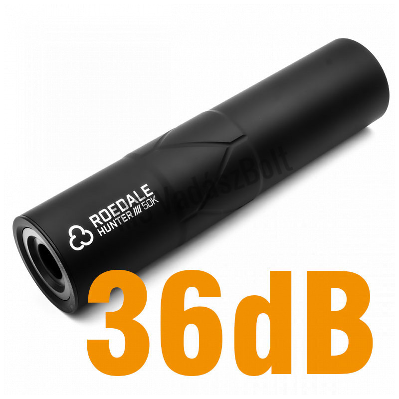 A Roedale Hunter 50K egy abszolút nagy teljesítményű hangtompító, ugyanakkor könnyű és keskeny. Kiváló csillapításával, nagy teljesítményével és optimális méreteivel nyűgöz le. Teljesítményének és méretének köszönhetően a Hunter 50K a legjobb vadászati ​​hangtompító kategóriájában a piacon, és tökéletes választás minden vadász számára. A Roedale Hunter 50K hangtompító egy cső feletti hangtompító, és az építési tervezés szempontjából a Hunter 55K-n alapul. 50 mm átmérőjével keskenyebb és könnyebb. Ennek ellenére az elért csillapítási teljesítmény jelentős, akár 36 dB-ig. A menethossztól függően a tágulási kamra kb. 70 mm-rel hátrafelé van megfeszítve a csövön, így a fegyver teljes hossza a lehető legrövidebb marad. Ezt a hangtompítót egymagos kivitelben tervezték. Ez azt jelenti, hogy van egy belső rész és egy külső héj. A Hunter 50K hangtompító kiváló kombinációja a zajszint-csökkentésnek, a torkolatvillanás kiküszöbölésnek és a visszarúgás csökkentésnek Az alkatrészeket szilárd nyersdarabokból marják és esztergálják modern CNC gépeken, nagy szilárdságú alumíniumötvözetből a repülőgépiparból és a védelmi iparból (kivéve a polioximetilénből készült vezetőt). A felületek ezenkívül edzettek, bevonatosak és Mil-Spec Type III feketére kemény-anodizáltak.