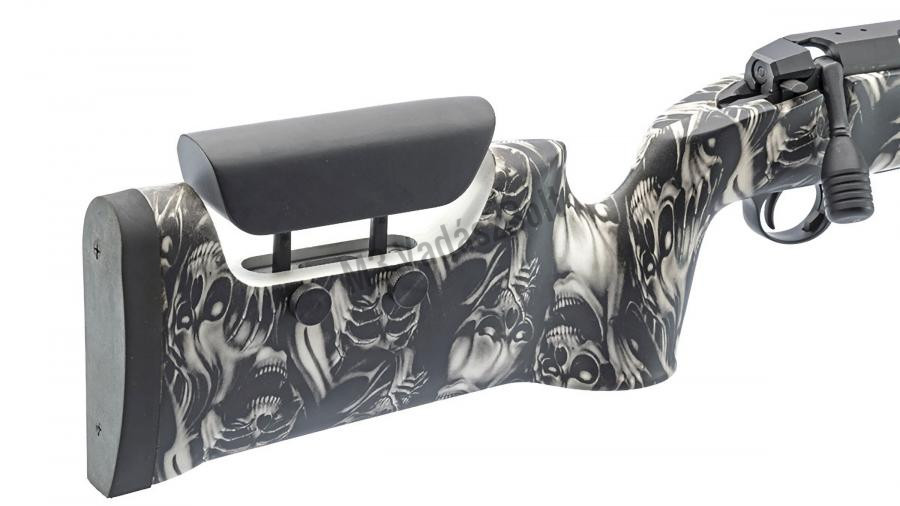 Minden porcikájában a egyediséget és a különlegességet sugallja a puska. Elég csak az egyedi festésű, laminált agyazásra, a csavart zárdugattyúra vagy az extra vastag, 28mm átmérőjű, hidegen kovácsolt - a jobb hőelvezetés és visszahülés érdekében spirálisan bemart - MRR huzagolású csőre gondolnunk, láthatjuk, hogy ez tényleg a bevállalós lövészek fegyvere.