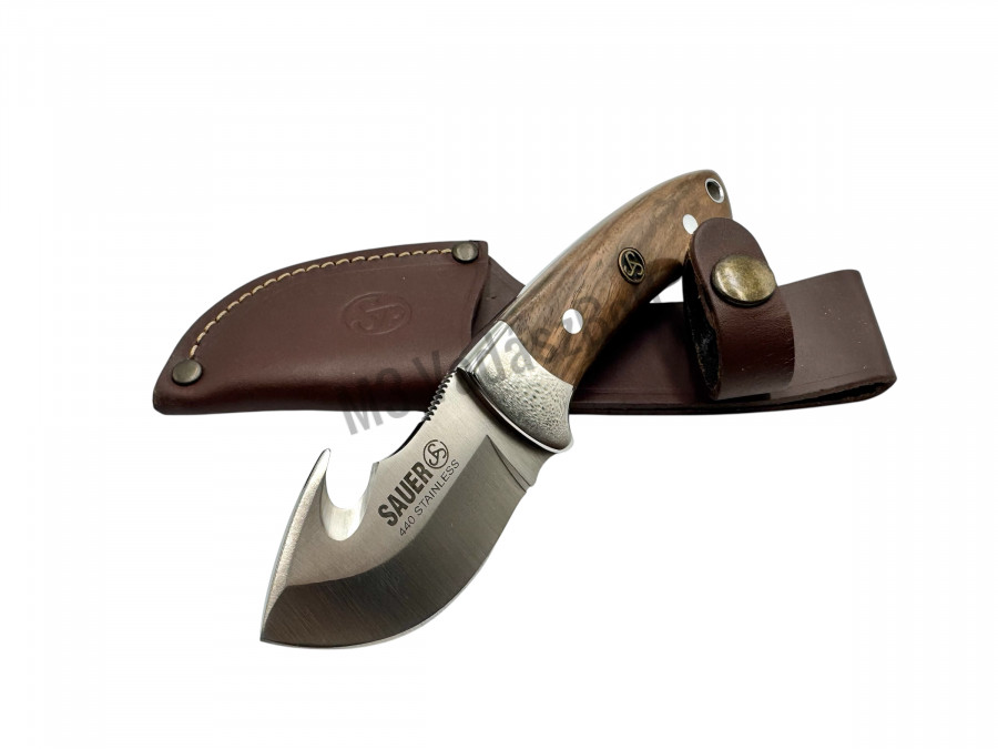 A Sauer nyúzókés kiváló választás vadászok számára, akik megbízható, praktikus eszközt keresnek a zsigereléshez és a bőr nyúzásához. A 7 cm hosszú, 440-es rozsdamentes acél penge rendkívül éles és tartós, míg a beépített nyúzóhorgos kialakítás megkönnyíti a pontos és biztonságos munkát. A markolat nemes diófa markolatpanelekből készült, amelyek elegáns megjelenést és biztos fogást nyújtanak. A késhez tartozik egy minőségi nyereg bőr tok, amely megbízható védelmet és kényelmes hordozhatóságot biztosít.
