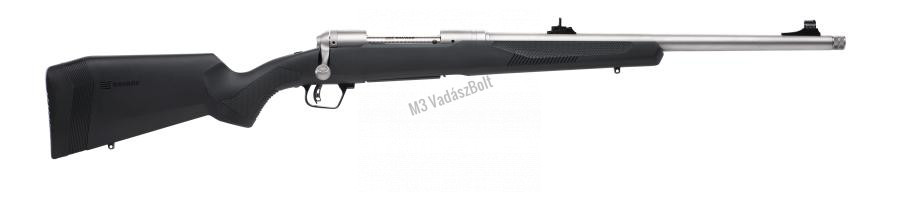 Savage 110 Brush Hunter 20' 338WinMag - Kiváló, rövid csövű cserkelőpuska. Az új 110-es modellek mindegyike megbízható pontosságra lett tervezve. A szintetikus tuson a stabil fogás érdekében a markolat és az előagy rovátkolt felületet kapott. A biztonságról az accutrigger rendszer gondoskodik, az állítható elsütőbillentyű előtt méretes helyet hagy a sátorvas, így akár kesztyűben is kényelmesen használható. A fegyvert szíjkengyel előkészítéssel szerelték fel.
