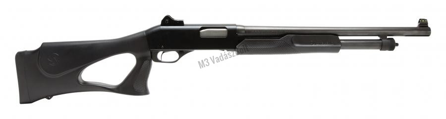 Savage Stevens Mod 320 Security Thumbhole 12/76, pumpás sörétes fegyver - Ez az előagyszános rendszerű sörétes puska taktikai kialakítást kapott. A megbízható kezelés mellett a fegyver használata kényelmes, a szán finoman siklik hátra, a thumbhole(belenyúlós) tus ergonomikus kialakításának köszönhetően a fegyver célratartása egyszerre kényelmes és biztos. A megbízható és tartós, nehéz igénybevételre tervezett szerkezet egy igazán kiváló munkaeszközzé teszi ezt a fegyvert. A cső feketére barnított acél, a puska tusa kiváló minőségű szintetikus anyagból készült. Ez nem csak egy puska, ez egy Savage.