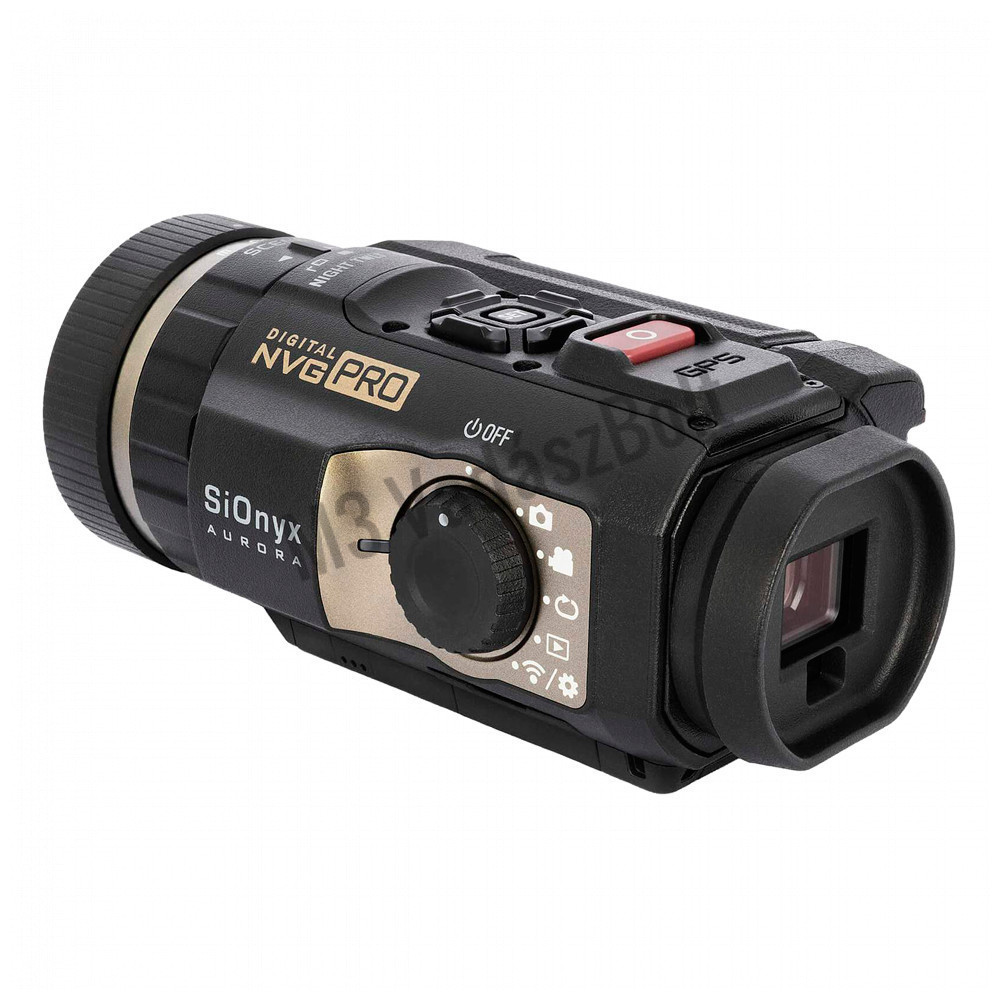 A SiOnyx Aurora PRO változata a világ első színes éjjellátó kamerája profi kiegészítőkkel. A szabadalmaztatott technológia révén a keresőben színes, tiszta képet láthatunk egészen 2 millillux-ig, vagy akár holdfénymentes, csillagos éjszakákon is. A kép szemcsésedése valóban minden eddiginél kisebb mértékű. Ami különleges, az az, hogy egy jó minőségű infra fényvetővel megsokszorozható a teljesítménye ésszerű távolságokon belül. A kamera a fent vázolt tulajdonságokon kívül fel van szerelve WiFi-vel, giroszkóppal, iránytűvel, GPS-el, gyorsulásmérővel, de akár a valósidejű virtuális világba - az úgynevezett AR (augmented reality) rendszerekbe - is bebocsátást nyerhetünk vele. A PRO változat praktikus és egyben professzionális kiegészítőket kapott, amik csak a felhasználhatóságot és a tartósság érzetét fokozzák.