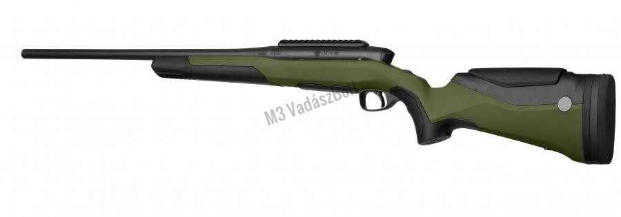 A Steyr MS WILD a Steyr 160 éves hagyományaira és innovációjára építve kínál kiemelkedő precizitást és megbízhatóságot még a legszélsőségesebb körülmények között is. A hidegen kovácsolt STEYR-MONOBLOC-SYSTEM esetében a zár és a cső egyetlen tömb, a legkeményebb európai acélból készül, maximális stabilitást biztosítva. A fegyvert katonai szabványok szerint tesztelték (-51°C, sós víz, homok, ütés- és ejtési próbák), így garantáltan ellenáll az időjárás és a terep kihívásainak, legyen szó sziklás hegyvidékről, sűrű erdőről vagy nyílt területről. Formavilága a CLII és a Monobloc modellek jegyeit ötvözi, kétállású, görgős biztosítóval. Gyárilag két Picatinny sínnel rendelkezik (távcsőhöz és az előagyon kiegészítők rögzítéséhez), tárkapacitása 3+1, kivehető Steyr szabvány tárával gyors újratöltést tesz lehetővé. Az ergonomikus szintetikus tusa állítható pofadékemelővel és hosszabbító betétekkel személyre szabható, zöld vagy barna színben érhető el; a menetes (5/8×24 UNEF) hidegen kovácsolt csőhöz 700 grammos direkt sütés társul. A STEYR MS WILD a vadon legkeményebb kihívásaira tervezett, tartós és precíz eszköz, amely minden környezetben megállja a helyét.