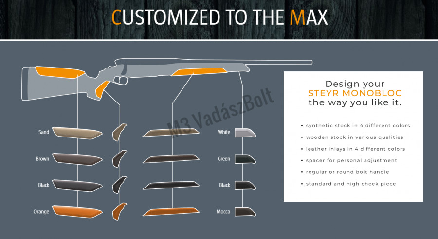 Steyr Monobloc 300WM,Wood, barna bőr betétekkel