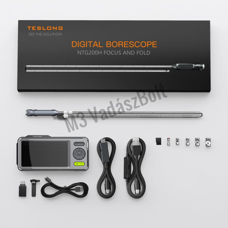 Teslong fegyver endoszkóp/csőkamera fókuszálható és összehajtható csővel, 5" HD monitorral