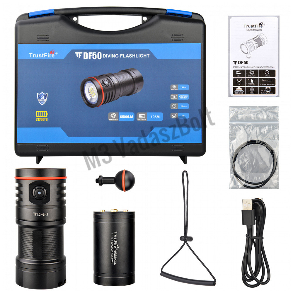 A TrustFire DF50 egy nagy teljesítményű búvárlámpa, amelyet kifejezetten búvárkodáshoz, barlangbúvárkodáshoz, szabad merüléshez és egyéb víz alatti világításhoz terveztek.