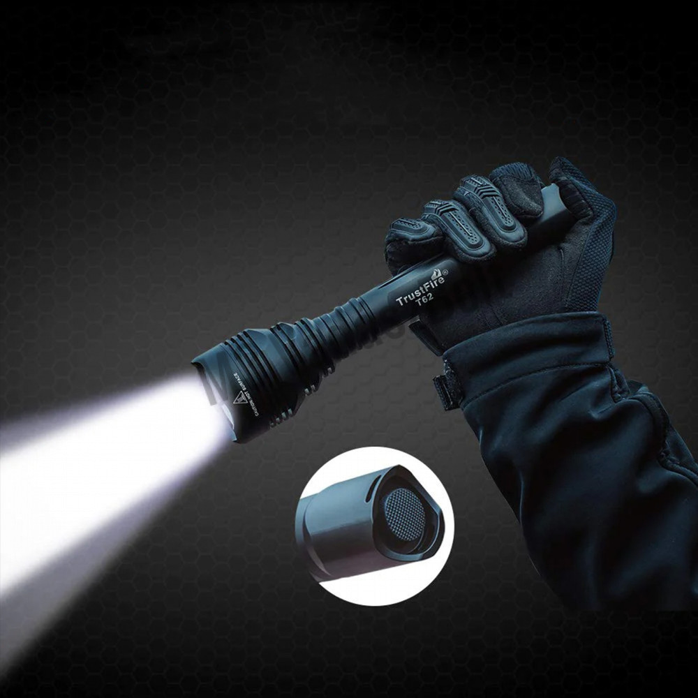 A Trustfire T62 szett professzionális, kiváló teljesítményű taktikai elemlámpa. Cree XHP70 LED-es fényszóróval ellátott, ami 3600 lumenes fényerőt és 431 méteres hatótávot biztosít. Ennek a megbízható lámpának a hossza mindössze 25.4 mm.