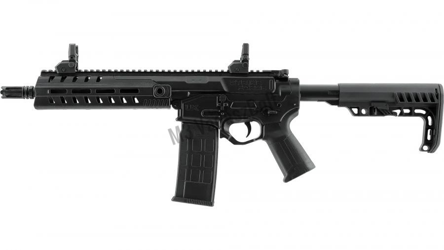 Modern lövészélmény AR stílusban – az UX Strike Force egy taktikailag ihletett és rendkívül erős légfegyver, amely számos funkcióval rendelkezik a tökéletes lövészélmény érdekében. A <4,5 joule csőtorkolati energiájú, megbízható CO₂ rendszer, blowback mechanizmus és a fél- és teljes automata üzemmód segítségével a Strike Force légpuskával rekordsebességgel találja el a célpontokat. A fegyver All-in-One tárat használ, amely kapacitása 30 darab 4,5 mm-es (.177) acél BB, valamint két 12 g-os CO₂ kapszula.
