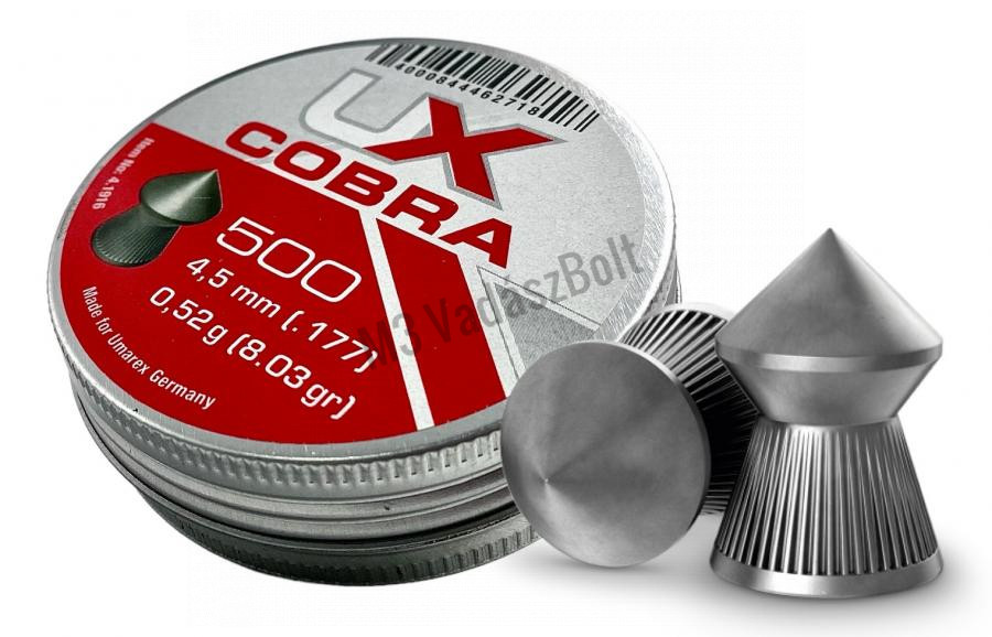 Umarex Cobra hegyes és bordázott léglövedék. 4,5-ös kaliberű, 0,52g. súlyú . 500db-os kivitelben kapható