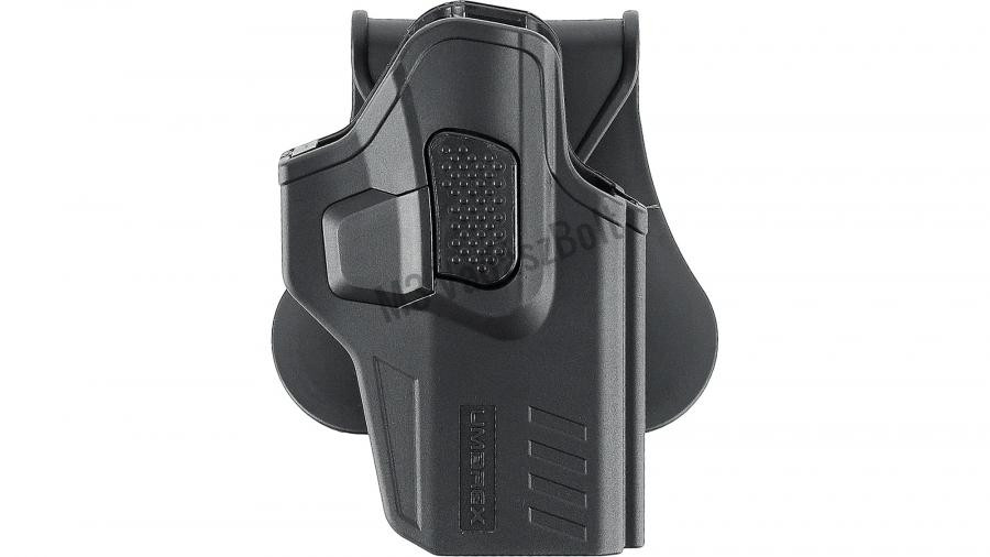 Az Umarex gyorsoldású tok ütés- és rázkódásálló polimerből készült, és egy finoman állítható csavarnak köszönhetően biztonságosan rögzíti az összes Walther PDP modellt. A fegyver kioldását egy rugóval vezetett kioldógomb teszi lehetővé.