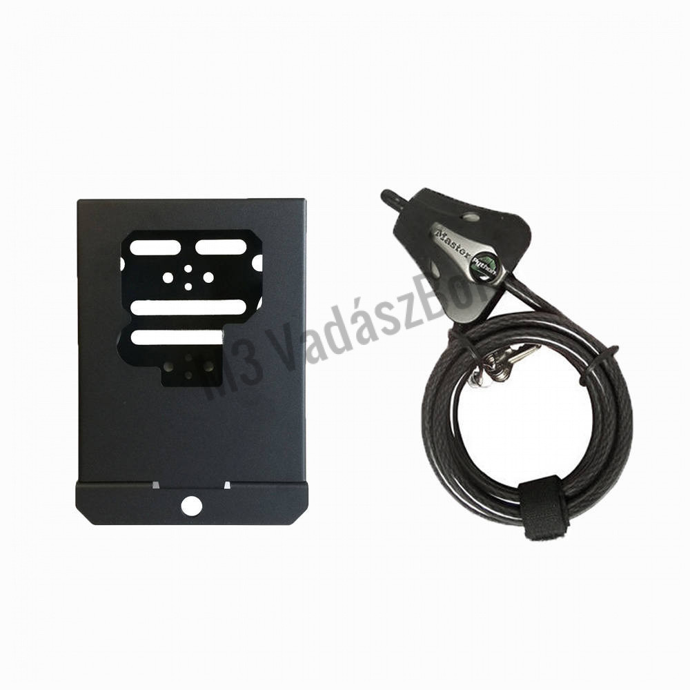 A kiegészítő szett tartalmaz egy erős fém házat az Uovision Glory LTE és W1 vadkamerákhoz és egy Python Lock 8mm-es biztonsági kábelzárat.