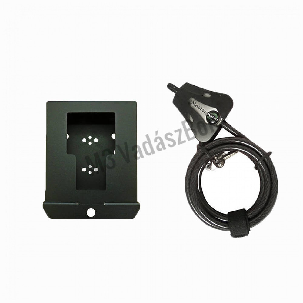 A kiegészítő szett tartalmaz egy erős fém házat az Uovision UM595/UV595 vadkamerákhoz és egy Python Lock 8mm-es biztonsági kábelzárat.