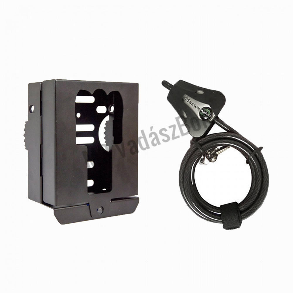 A kiegészítő szett tartalmaz egy erős fém házat az Uovision UM785/UV785 vadkamerákhoz és egy Python Lock 8mm-es biztonsági kábelzárat.