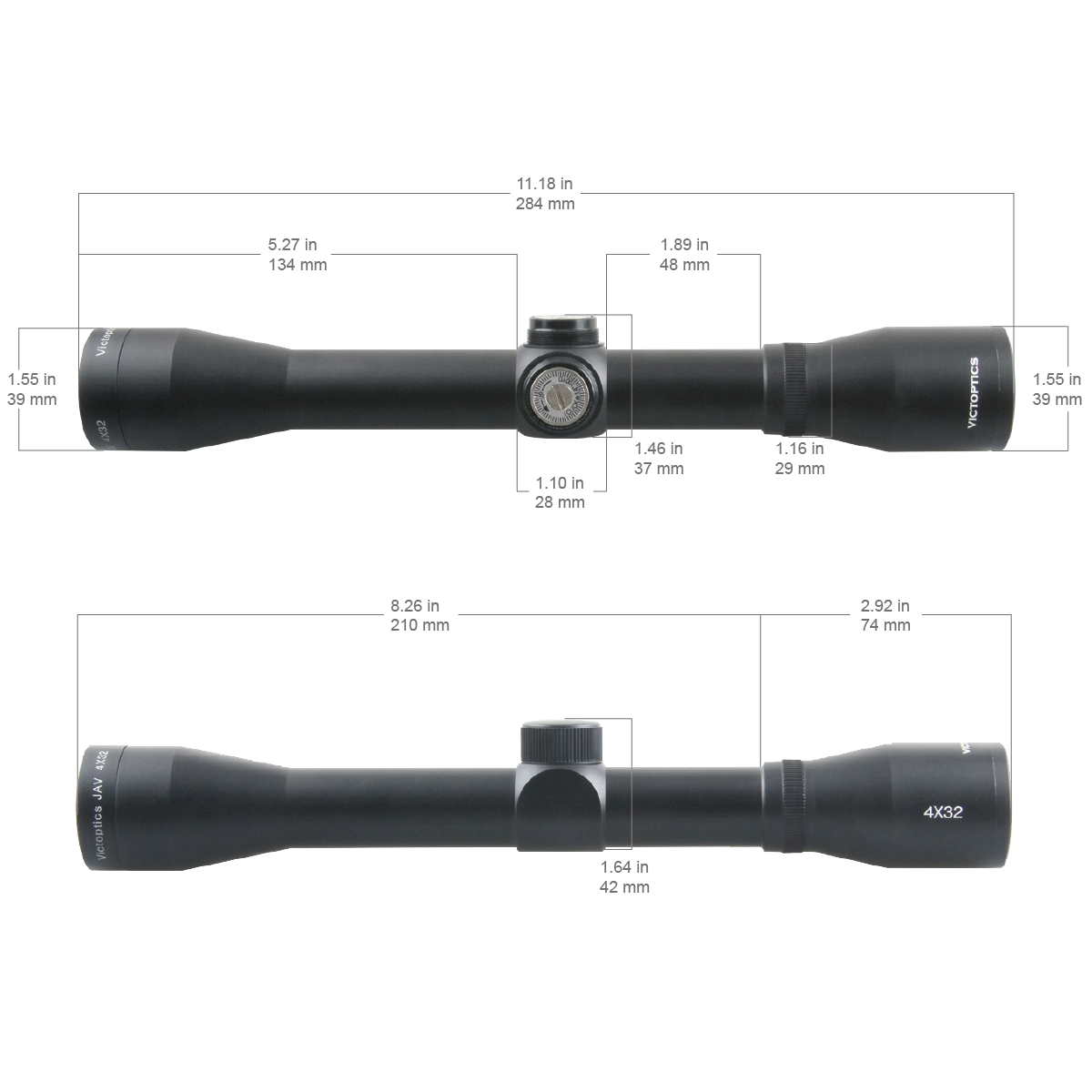 A kiváló minőségű tartós alumíniumötvözet biztosítja a vízállóságot és az ütésállóságot. 25,4 mm-es, 1 hüvelykes középtubusa ennek a kategóriának a legelterjedtebb tubusmérete. A csomagban található 25,4 mm-es Weaver (alapértelmezett) vagy 9-11 mm-es Prizma szerelékkel könnyen felszerelhető vadászpuskákra vagy a Weaver, esetleg Dovetail sínnel rendelkező légpuskákra. Mind vadászathoz, mind pedig airsoft játékhoz nagyszerűen illik a JAV 4X32-es céltávcsöve.