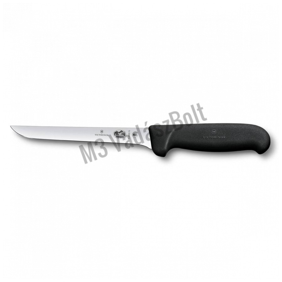Victorinox Fibrox csontozókés ívelt, 15 cm hosszú pengével és fekete csúszásmentes ergonomikus műanyag markolattal.