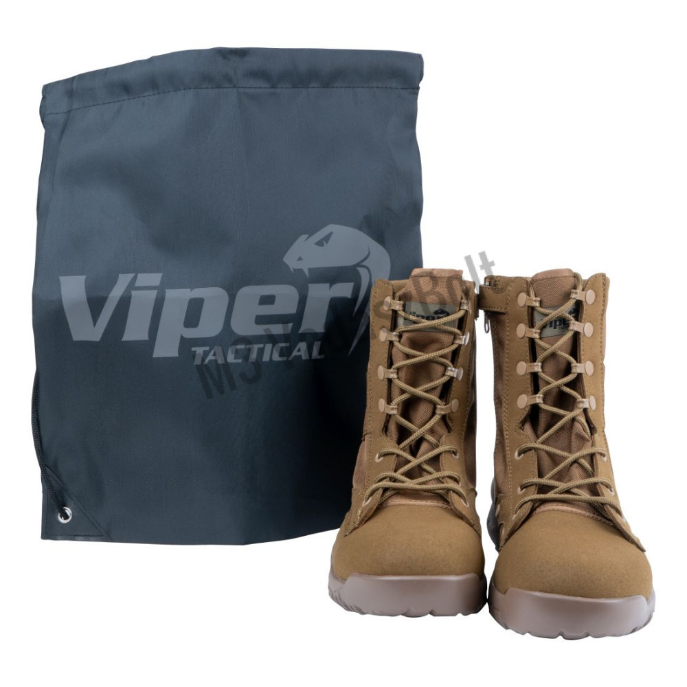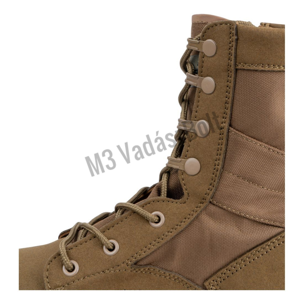 A Viper Tactical taktikai bakancs felső része nejlonból és szarvasbőrből készült a tartósság és a kényelem érdekében. A kényelmes oldalsó cipzárral könnyedén belebújhatsz a csizmába, míg az EVA talp pehelykönnyű kényelmet és tartást biztosít.
