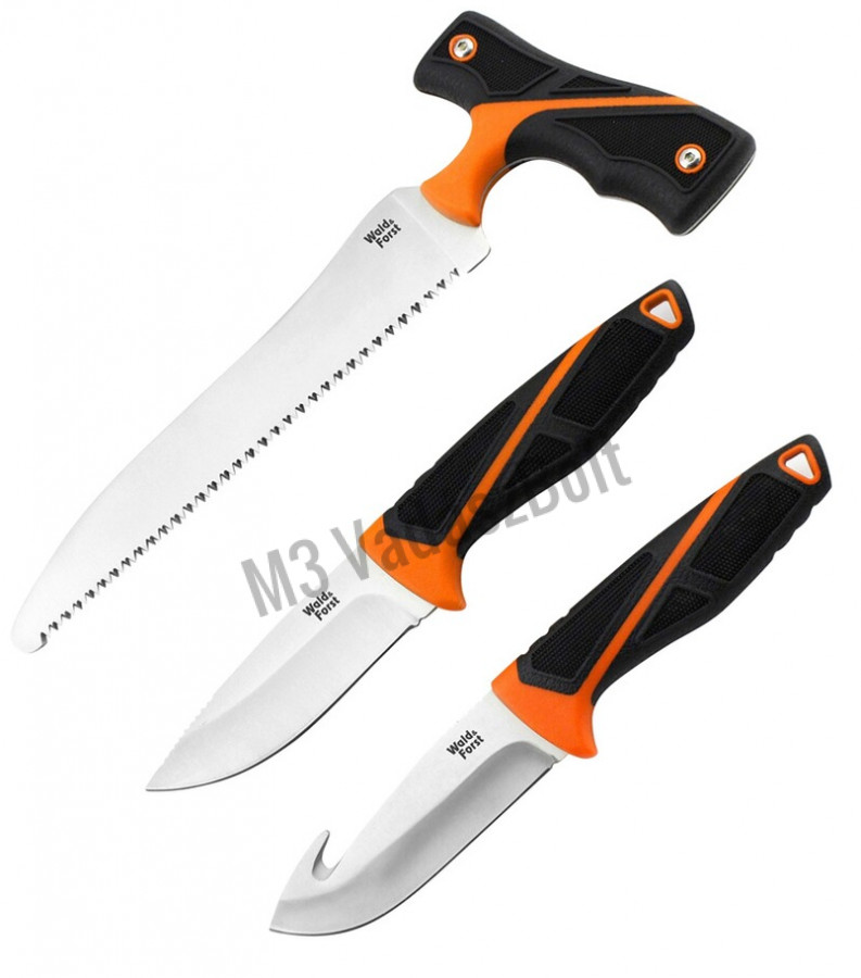 A 3 részes WALD & FORST kés és csontfűrész készlet nagyszerű társ a vadászatokhoz. A gyöngyvászon tokban elhelyezett kések és csontfűrés könnyen hozzáférhető bármilyen körülmények között. Tokot könnyedén lehet rögzíteni övhöz.