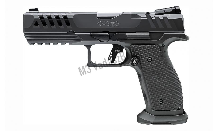 A Walther a szuper-sport kategóriában új szintre emeli a lőfegyverek teljesítményét a Black Ribbon modellel. Ez a fegyver ötvözi a Steel Frame Match világszínvonalú tulajdonságait az IPSC versenyzéshez szükséges alapvető elemekkel. A Dynamic Performance Trigger (DPT) egy alumíniumból készült, egyenes profilú sport elsütőbillentyű, amely rövid előhúzással, minimális elsütés utáni úttal és gyors visszaállással rendelkezik. A 25N elsütési erő kiemelkedő pontosságot biztosít. A finoman állítható mikrométeres irányzék lehetővé teszi a lövész számára a precíz célzást különböző távolságokon és körülmények között. A fegyver rendkívül agresszív markolatpanelekkel és meghosszabbított tárkioldó gombbal van felszerelve, amely gyors és megbízható tárcserét tesz lehetővé, különösen dinamikus lövészeti helyzetekben. Az egy darabból készült alumínium markolat precíz megmunkálással, 20 lpi recézéssel és szatén eloxált felülettel rendelkezik, biztosítva az ergonomikus és kényelmes fogást. A masszív acél váz csökkenti a visszarúgást és növeli a stabilitást, így fokozva a lövész teljesítményét. Az optikai irányzék előkészítés három adapterlemezt tartalmaz, kompatibilis a leggyakoribb vöröspont irányzékokkal, például a Trijicon, Docter vagy Leupold Deltapoint modellekkel, lehetővé téve a gyorsabb célzást. A könnyített szán elején kialakított nyílások csökkentik a fegyver tömegét, gyorsabb szánmozgást biztosítva, amely javítja a lövész reakcióidejét és általános teljesítményét a versenyeken.