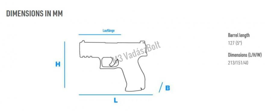 - Irányzék: Állítható hátsó irányzék és acél első irányzék