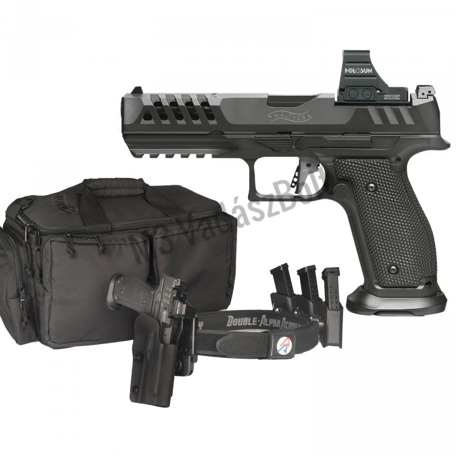 A Walther PDP Steel Frame Performance Package egy prémium minőségű, versenyre optimalizált komplett csomag, amely a lehető legjobb kezelhetőséget, pontosságot és felszereltséget kínálja sportlövészek és professzionális felhasználók számára. A készlet minden eleme a maximális teljesítményt és megbízhatóságot szolgálja – a fegyvertől a hordási megoldásokig.