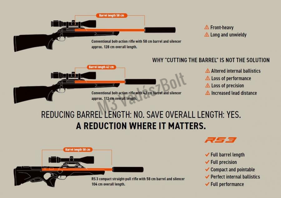 - Teljes hossz hangtompító nélkül: 80,5 cm