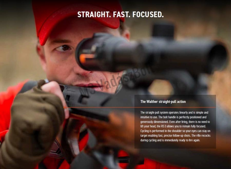 Walther RS3 HERITAGE Fourstar egy prémium kategóriás, egyenes húzású ismétlővadászfegyver, amely a klasszikus megjelenést és a modern Walther technológiát ötvözi. A 4-es osztályú diófa tus elegáns, ugyanakkor funkcionális kialakítású, biztos fogást és kiváló ergonómiát nyújt. Kompakt kialakítása és ideális súlyelosztása tökéletes egyensúlyt, gyors célfelvételt és ösztönös kezelhetőséget biztosít. Az egyenes húzású zárszerkezet gyors és intuitív ismétlést tesz lehetővé célzás közben, anélkül hogy a lövész levenné szemét a célról. A Walther Performance elsütőszerkezet 800 grammos elsütési súllyal, száraz és tiszta elsütést garantál, amely egyszerre szolgálja a pontosságot és a biztonságot. A fegyver központi eleme a motorsportból ismert Monocoque elv alapján kialakított, nagy szilárdságú alumínium rendszerház, amely maximális merevséget és hosszú élettartamot biztosít. A kézi feszítőrendszer vállba emeléskor intuitívan működik, a biztonsági állapot mindig tapintható és jól látható. Az RS3 gyárilag a Walther QSA hangtompítóval készül, Zerolock szabadalmaztatott gyorscsatlakozással, amely garantálja az állandó találati pontot. A külön levehető hővédő burkolat forró állapotban is biztonságos kezelést tesz lehetővé. A szerszám nélküli, egykezes optikarögzítő rendszer 100%-os ismétlési pontosságot biztosít újrabelövés nélkül. Fontos tudnivaló, hogy a fegyver kizárólag az eredeti Walther hangtompítóval együtt rendelhető.