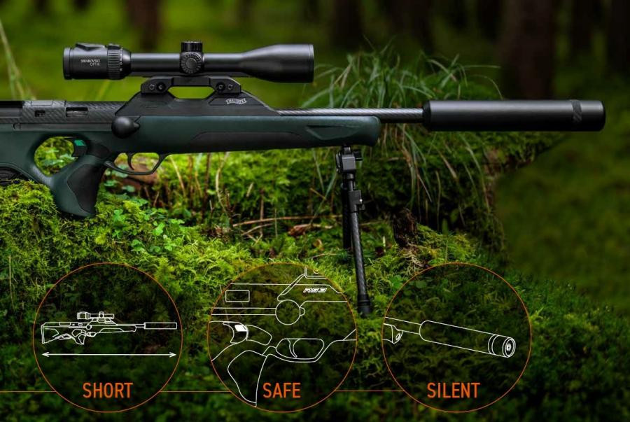 Walther RS3 Pro Pine egy modern, nagy teljesítményű, egyenes húzású ismétlővadászfegyver, amelyet kifejezetten a kemény, változó körülmények közötti vadászathoz terveztek. A zöld színű, robusztus polimer tus rendkívül ellenálló, időjárásfüggetlen és biztos fogást nyújt, miközben ergonomikus kialakítása gyors és magabiztos kezelhetőséget biztosít. Kompakt kialakítása és ideális súlyelosztása tökéletes egyensúlyt, gyors célfelvételt és ösztönös kezelhetőséget biztosít. Az egyenes húzású zárszerkezet gyors és intuitív ismétlést tesz lehetővé célzás közben, anélkül hogy a lövész levenné szemét a célról. A Walther Performance elsütőszerkezet 800 grammos elsütési súllyal, száraz és tiszta elsütést garantál, amely egyszerre szolgálja a pontosságot és a biztonságot. A fegyver központi eleme a motorsportból ismert Monocoque elv alapján kialakított, nagy szilárdságú alumínium rendszerház, amely maximális merevséget és hosszú élettartamot biztosít. A kézi feszítőrendszer vállba emeléskor intuitívan működik, a biztonsági állapot mindig tapintható és jól látható. Az RS3 gyárilag a Walther QSA hangtompítóval készül, Zerolock szabadalmaztatott gyorscsatlakozással, amely garantálja az állandó találati pontot. A külön levehető hővédő burkolat forró állapotban is biztonságos kezelést tesz lehetővé. A szerszám nélküli, egykezes optikarögzítő rendszer 100%-os ismétlési pontosságot biztosít újrabelövés nélkül. Fontos tudnivaló, hogy a fegyver kizárólag az eredeti Walther hangtompítóval együtt rendelhető.