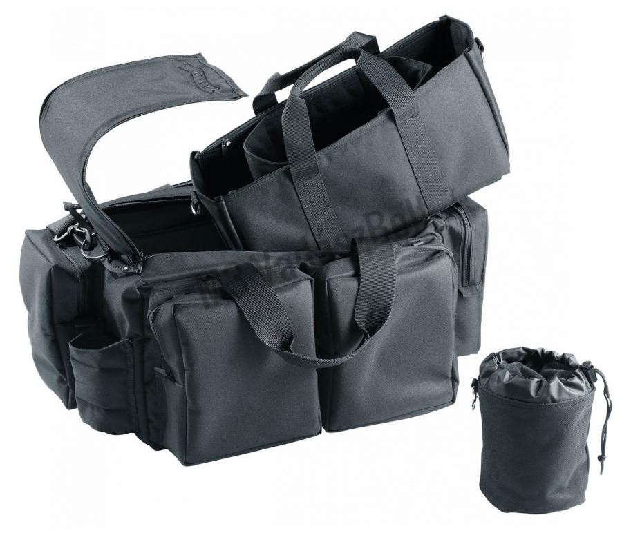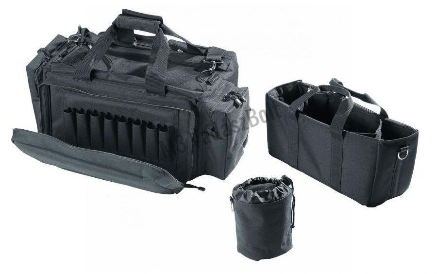 Magas minőséű nylonból készült range bag elég hellyel 2-3 pisztoly/revolvernek, lőszernek és egyéb felszereléseknek. Négy kisebb zipzározható tárolórekesz. Az elülső zseb 8 tárat tud tartani, amiket fülekkel lehet rögzíteni. Belső külön kivehető táska.