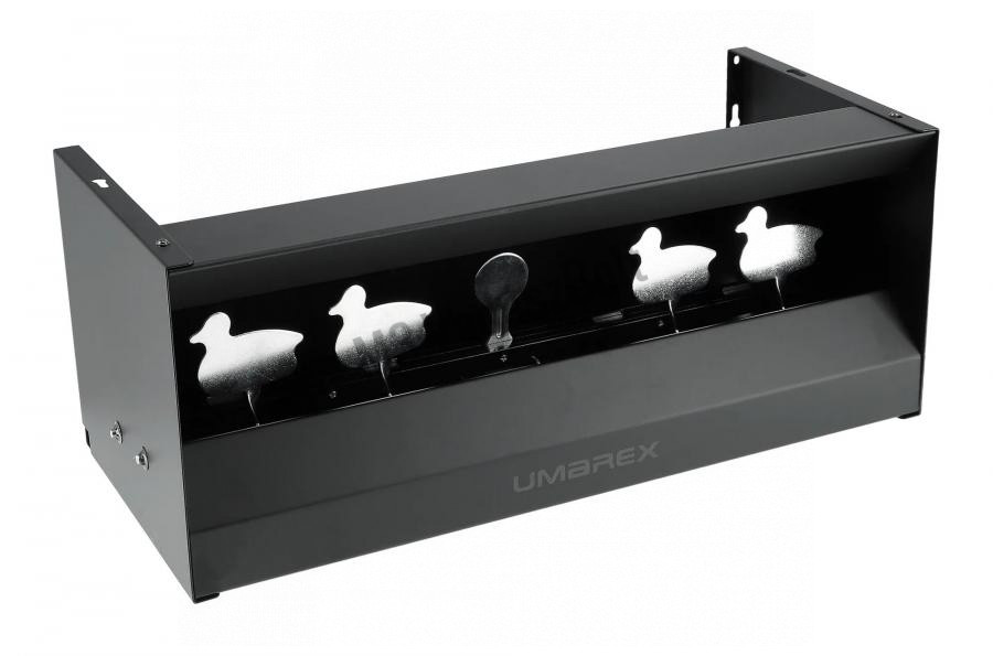 Fém házban kialakított lövedékgyüjtős céltábla 5db fém sziluett céllal. A kacsák találat esetén a hátsó mágnes csíkhoz tapadva fekvő helyzetben maradnak, míg a középső gömb alakú célt el nem találjuk. Ekkor minden cél az eredeti pozíciójába áll vissza.