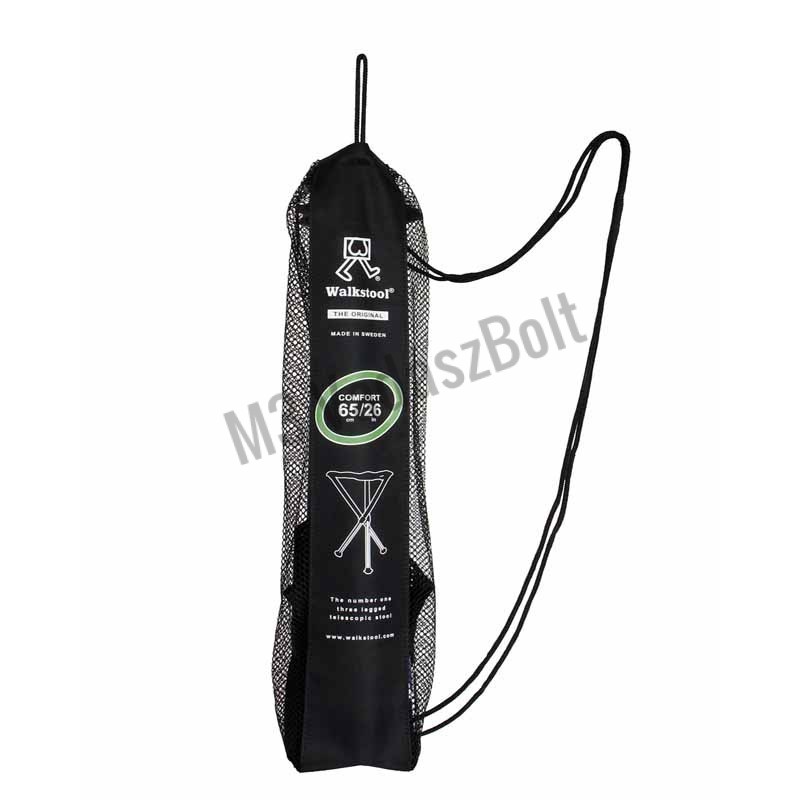 Walkstool B50 szék - Összecsukható, háromlábú univerzális szék, mely félig nyitva és teljesen kihúzott lábakkal is tökletes kényelmi eszköz vadászaton, kiránduláson, szereléshez, horgászathoz.Kihúzott lábakkal 50cm az ülőlap magassága a talajtól. A Basic kivitel ülőlapja egybefüggő gyöngyvászon  és kb. 20% -kal nagyobb méretű, mint a hasonló funkciójú háromlábú székeké. Ultrakönnyű, kis helyen elfér és biztonságos, kényelmes ülést biztosít.