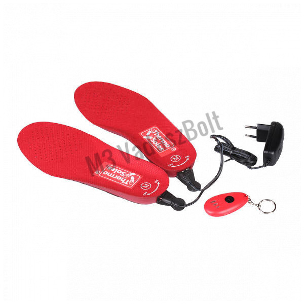 A Thermosoles távirányítós, fűthető talpbetét ideális választás arra, amikor a lábbeli levétele problémát okoz. A beépített 900 mAh-ás akkumulátornak köszönhetően nincs szükség kábelre, ugyanakkor a talpbetét vékony és kényelmes viseletet biztosít. A fűtési hőmérséklet 38-44 Celsius fok között állítható a távirányító segítségével. Lábbelitől és a külső hőmérsékleti körülményektől függően akár 6 óra fűtési idő érhető el. Adott mérethatárokon belül méretre igazítható.
