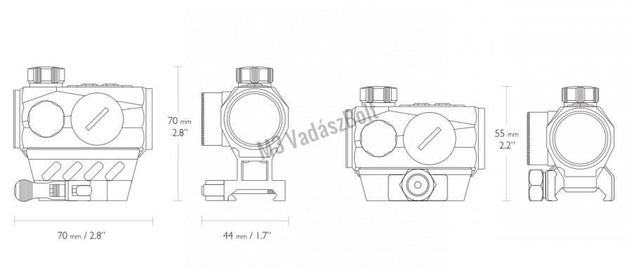 - 1x nagyítás, amely lehetővé teszi a gyors célpont azonosítást és követést anélkül, hogy a lövész szemét távolságot változtatná.