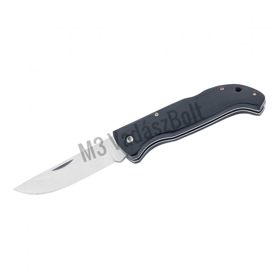A Herbertz zsebkés megbízható, klasszikus kialakítású mindennapi társ. A 9 cm hosszú, szaténfényű penge rozsdamentes AISI 420 acélból készült, amelyet praktikus körömvájat segít könnyen nyitni. A jól bevált Backlock zár biztosan rögzíti a pengét nyitott állapotban, így használata biztonságos és kényelmes. A markolat fekete pakkafából készült, amelyet rozsdamentes acél platnik erősítenek. Ergonomikus kialakítása kényelmes fogást kínál, a markolat végén található zsinórlyuk pedig a biztonsági szíj rögzítését teszi lehetővé.