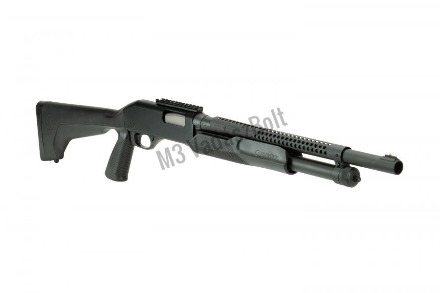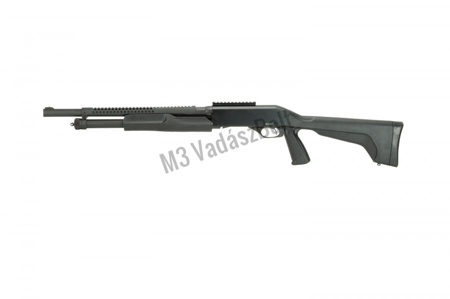 Savage Stevens Mod 320 Security 12/76 pumpás - Ez az előagyszános rendszerű sörétes puska taktikai kialakítást kapott. A megbízható kezelés mellett a fegyver használata kényelmes, a szán finoman siklik hátra, a pisztolymarkolat ergonomikus kialakításának köszönhetően remekül közvetíti az energia egy részét alkarunkba, így véve le némi terhet a vállról. A cső feketére barnított acél, a puska tusa kiváló minőségű szintetikus anyagból készült. Ez nem csak egy puska, ez egy Savage.