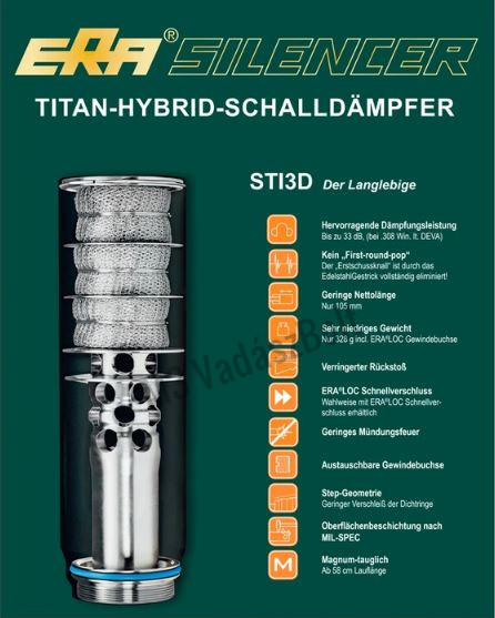 ERA® SILENCER STI 3D TITANIUM HANGTOMPÍTÓ ERA®LOCK GYORSOLDÁSSAL, .338 (8.6mm)