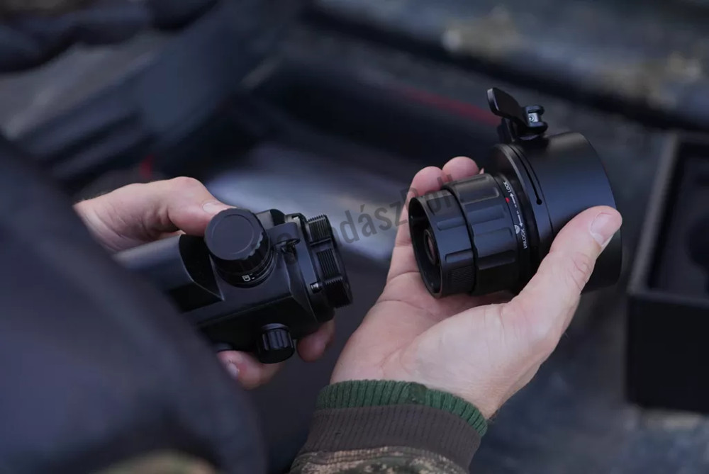 A szorító adapter csak hőkamera oldali megfelelő M52 x 0,75 menetre csatlakoztatható. A céltávcső frontlencséjének külső tubus átmérőjéhez valót kell megvásárolni.