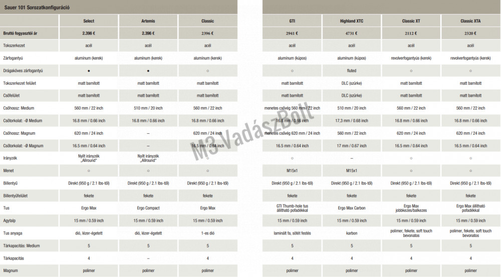 A Sauer 101 olyan vadászok prémium fegyvere, akik jobban kedvelik a klasszikus, moduláris rendszer nélküli vadászfegyvert, de nem akarnak lemondani a Sauer legendás tulajdonságairól: a pontosságról, a sima zárműködésről, a megbízhatóságról és a tökéletes egyensúlyról.